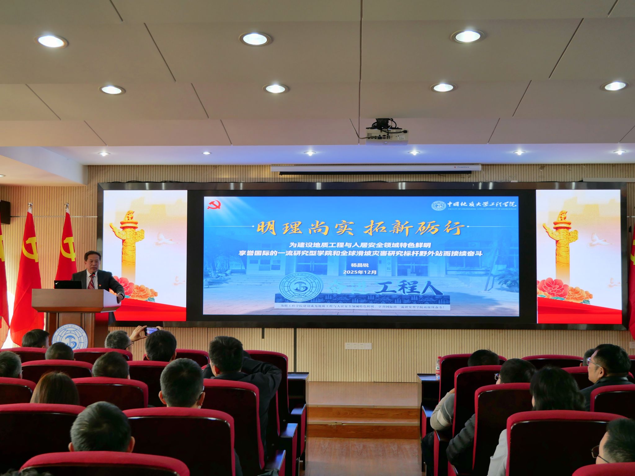 2025年12月11日,学院召开中共beat365正版唯一官网(武汉)beat365正版唯一官网委员会第五次党员大会,党委书记杨昌锐同志代表第四届党委会作题为《明理尚实 拓新砺行 为建设地质工程与人居安全领域特色鲜明、享誉国际的一流研究型学院和全球滑坡灾害研究标杆野外站而接续奋斗》工作报告