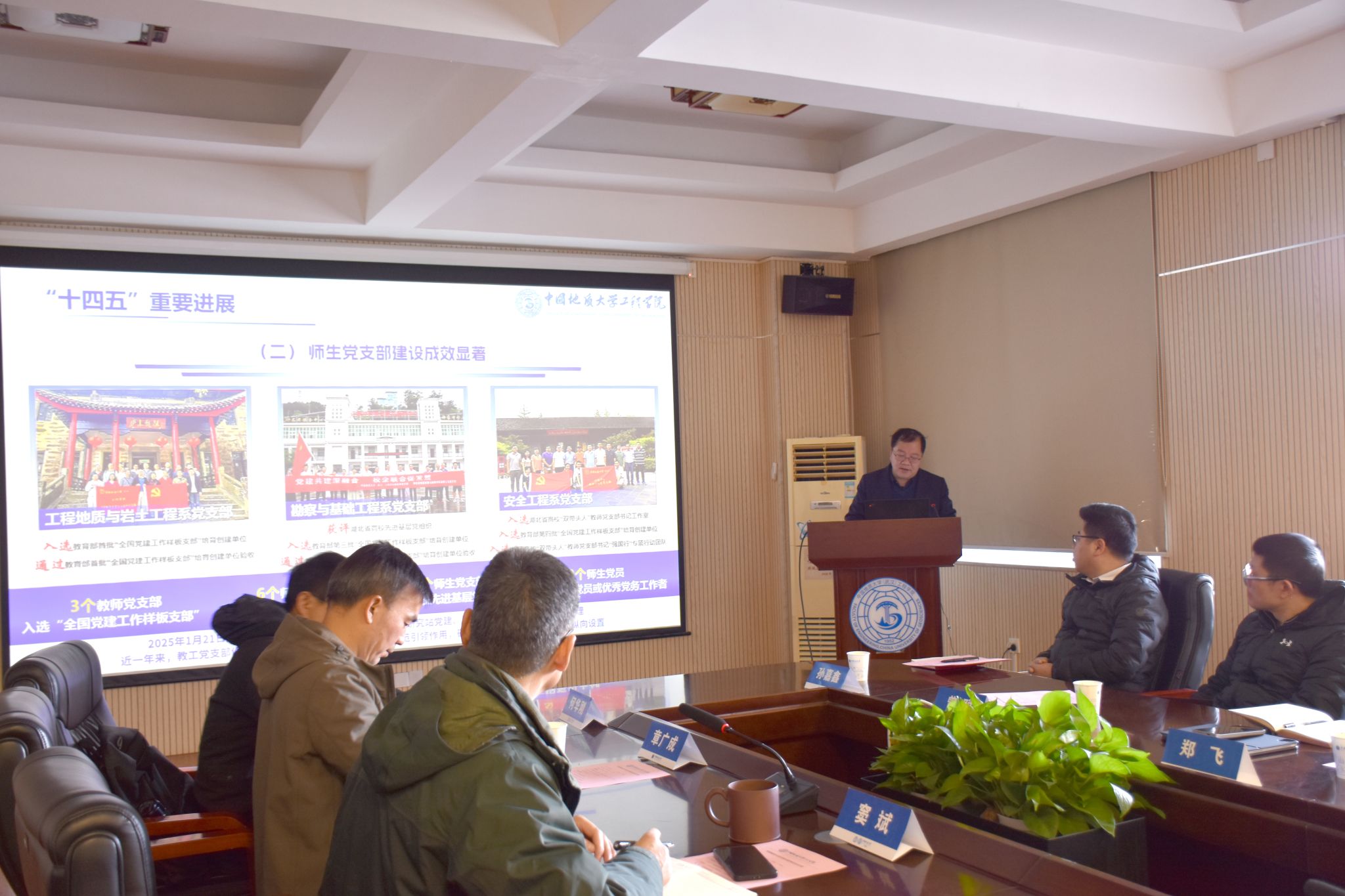 李建威校长对学院“十四五”期间取得的显著成效给予高度肯定。他指出,beat365正版唯一官网作为学校“双一流”建设的核心力量,在服务国家重大战略需求、培养高素质工程技术人才等方面发挥了重要作用。针对学院“十五五”规划编制与未来发展,李建威校长提出明确指导意见:一是锚定国家“三深一极”战略需求,精准布局深地、深海、深空、极地等新兴领域,打破学科边界与学院壁垒,推动学科交叉融合与拓展升级;二是聚焦高端平台建设,加大地质工程领域高水平实验室筹建力度,构建“重大项目-重大平台-重大成果-重大奖励”联动机制;三是强化人才引育并举,积极引进海内外顶尖学者、企业领军专家与大国工匠,打造结构合理、富有活力的人才梯队;四是坚守立德树人根本,狠抓学风建设,增强学生专业认同感,夯实基础知识与地质特色功底,培养担当民族复兴大任的时代新人;五是加强院系两级班子建设,突出政治引领、提升履职能力、强化团结协作、深化服务师生,以高质量治理赋能学院发展,充分激发师生干事创业的积极性与创造性。