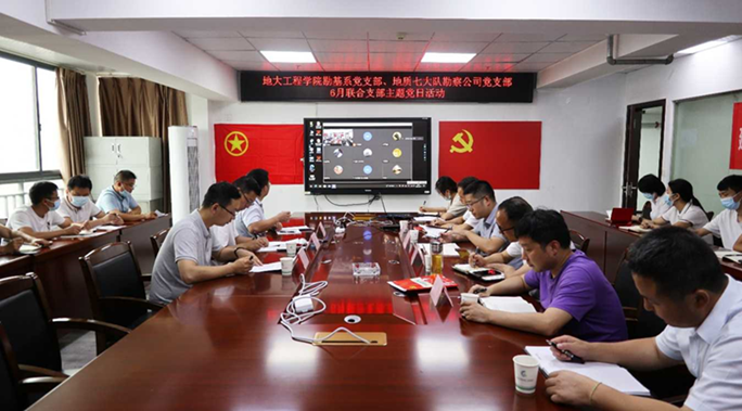 (通讯员 王俊)6月27日,勘基系党支部与湖北第七地质大队勘察公司党支部联合开展“主题党日”活动,系主任卢春华、党支部副书记王俊、宣传委员吴文兵赴宜昌线下参加活动。