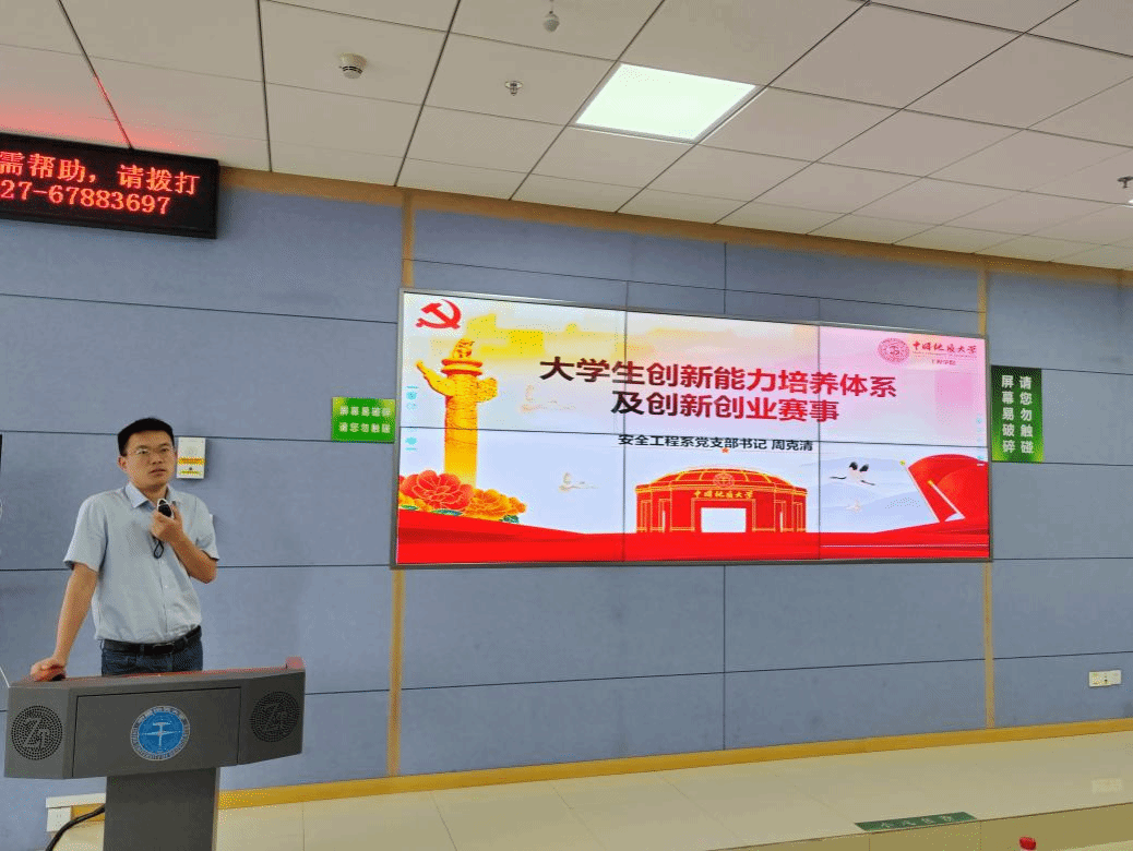 (通讯员 刘宜之 彭友元 )为深入推进“党建+双创”育才模式,助力学生明晰科创路径、点燃创新火种,beat365正版唯一官网安全工程系党支部于2025年6月24日下午14:30,在南望山校区东教C106教室举办以“赋能成长加速器,点燃青创新火种”为主题的创新创业大讲堂。本期大讲堂主讲人包括“强国行”专项行动团队负责人、安全工程系党支部书记周克清教授,安全工程系郭良杰副研究员,安全工程系优秀研究生和本科生代表印恋、张佳乐、刘宜之,参会人员为2024级安全工程系全体本科生。会议由2024级本科生辅导员彭友元主持。